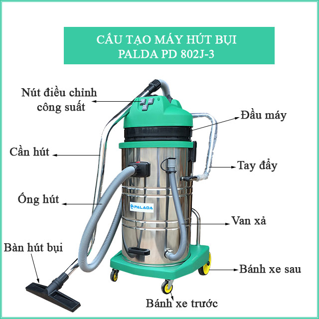Palada là thương hiệu sản xuất các dòng máy vệ sinh công nghiệp nổi tiếng, nhận được sự ưu ái của đông đảo người sử dụng bởi sở hữu hiệu năng tốt, độ bền cao và giá thành ưu đãi. Các sản phẩm máy hút bụi công nghiệp công suất lớn Palada được sử dụng phổ biến trong nhà xưởng, các trung tâm thương mại..., mang lại hiệu quả làm sạch vượt trội. Một trong những model nổi bật nhất của hãng sản xuất này chính là máy hút bụi công nghiệp Palada PD802J3.