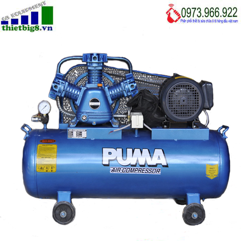 Máy nén khí puma 4hp bình chứa 110 lít phù hợp cho các xưởng sửa chữa xe máy, với lượng việc liên tục, với 3 xy lanh nén rất nhanh.